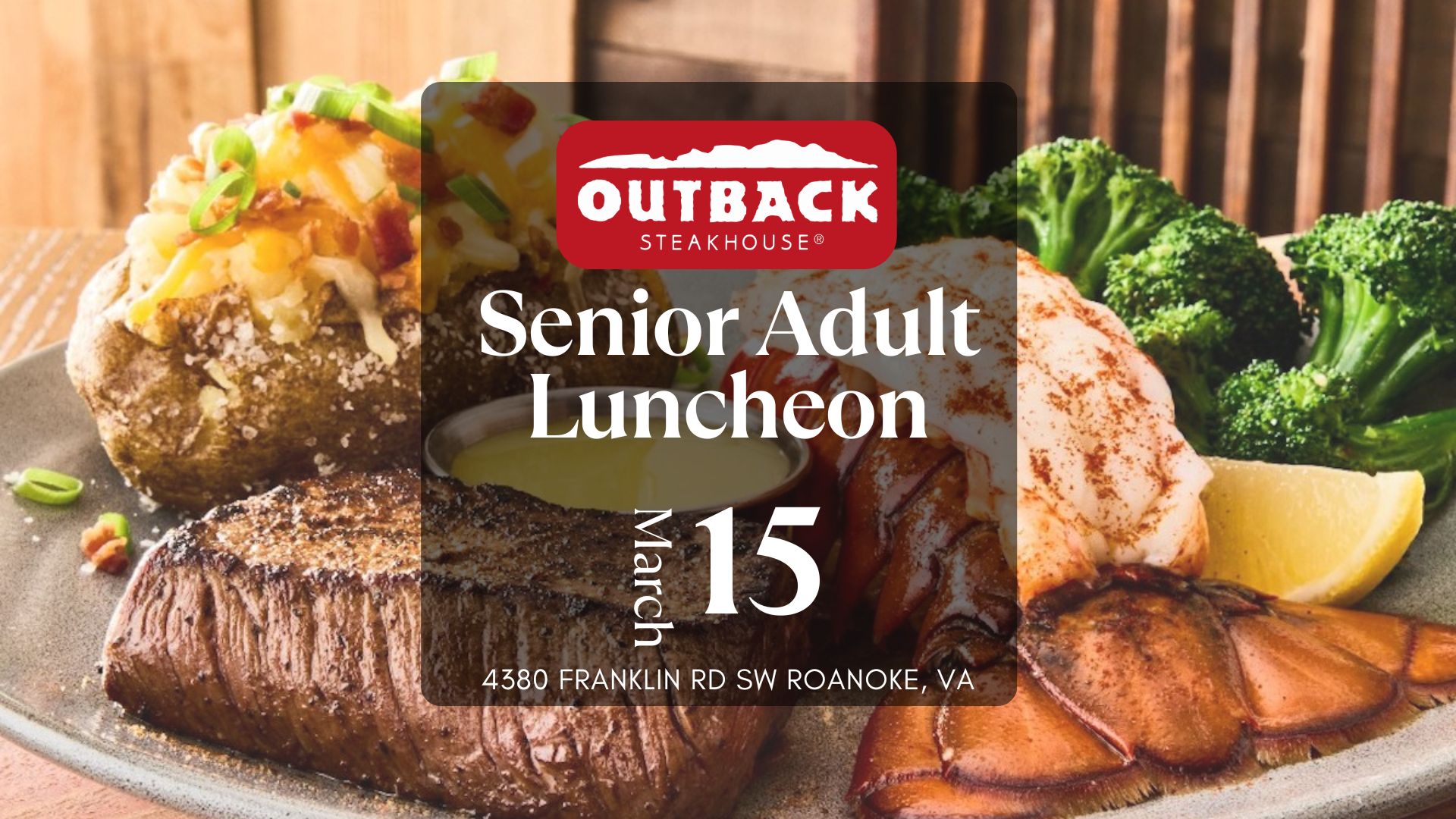 Come join us for our Monthly Senior Adults Luncheon. This month we will meet at Outback immediately after the service.