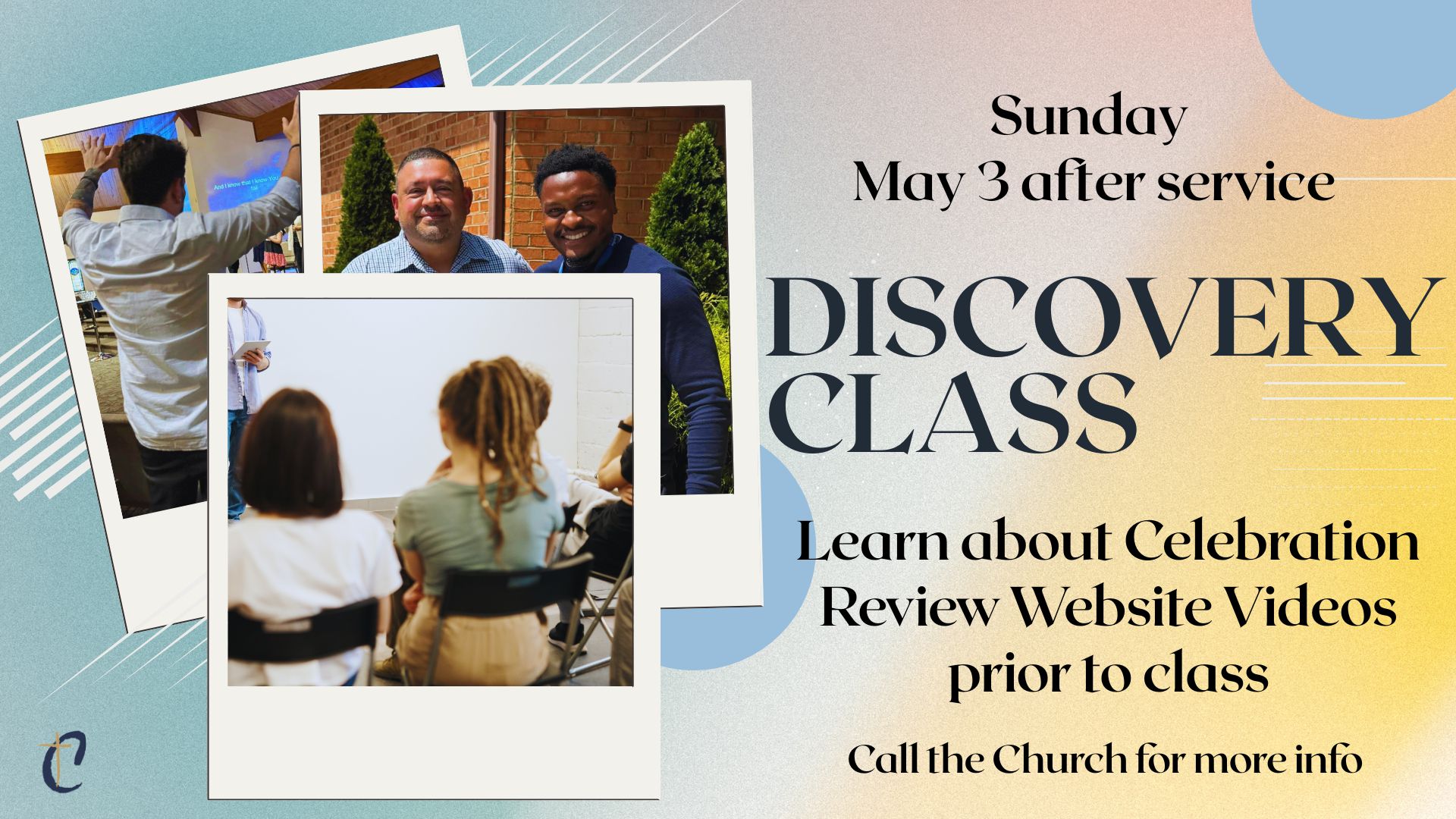 If you are interested in getting to know us better or joining the church. Plan to attend out Discovery Class on May 3 immediately following the service.
